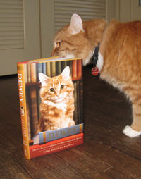 When I got the book, Dewey, I promptly put it on the floor to introduce Henry to his twin. The photo on the cover of Dewey is the cat himself when he was just under a year old (according to the story, and you can tell because his face isn’t quite fully formed).